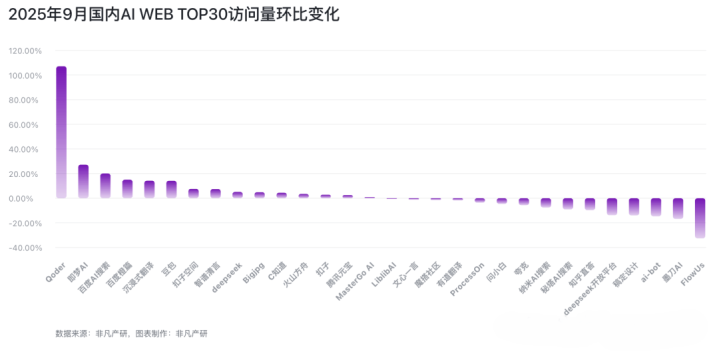 更为关键的是,夸克并非仅有手机App,还包括Web及PC浏览器版本。但市场表现,还缺乏竞争力。非凡产研数据显示,2025年9月国内AI Web端MAU总计为1.37亿,其中Top 10占据77.6%,夸克仅位列第22位,呈环比下降趋势。