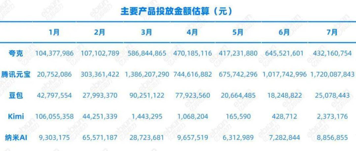 那么,夸克的投流成本是多少呢?来自AppGrowning的数据,2025年1-7月,夸克投放金额均超1亿元、其中3-7月超4亿元,与今年夸克的用户增长周期吻合,投流对MAU提升的效果可以说是立竿见影。