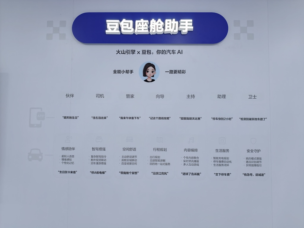 极客公园在车展期间参加了火山引擎的媒体群访。火山引擎高管在被问到「是否想做华为那样的大模型上车 Tier 1」时,明确说了「不想」。但你看他们实际在推的东西——「豆包座舱助手」是完整的产品级交付,跟豆包 App 互联互通,年内量产——这已经远远超出了一个「API 供应商」的边界。